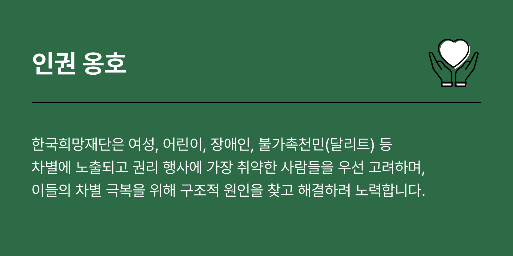 차별에 가장 취약한 사람들이 무한한 잠재력을 발휘할 수 있는 가장 근본적이고도 지속가능한 방법인 까닭입니다.